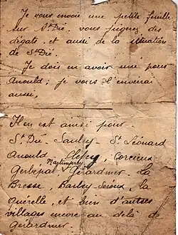 - ↑ Albert Ohl des Marais, Histoire de la Ville et du Val de Saint-Dié, op. cit., p. 174.