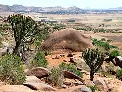 On dénombre dans la région du sud de l'Éthiopie la plus grande concentration de mégalithes de tout le continent africain[30]. Au nombre d'une centaine dans le Harar, d'autres plus récents (Ier millénaire de notre ère) se comptent par milliers dans le Choa et le Sidamo. L'une des régions les plus marquées par ce mégalithisme se trouve au sud d'Addis-Abeba, où quelque 160 sites archéologiques ont été découverts jusqu'à présent, celui de Tiya[31] est l'un des plus importants. Il comprend 36 monuments, dont 32 stèles présentant une figuration sculptée faite d'épées et de symboles demeurés énigmatiques.