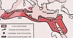 Le califat fatimide est ofondée en 909 par Ubayd Allah al-Mahdi . Il donne naissance au mouvement en s'appuyant sur les tribus Ketamas de petite Kabylie, puis du Constantinois qu'il a converties à l'islam chiite ismaélien. Ils réussirent à conquérir toute l'Afrique du Nord en plus de certaines terres au Moyen-Orient eurent également autorité sur la Sicile[14].