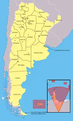 La souveraineté de l’Argentine fut formalisée par la déclaration d’indépendance du à Tucumán, puis avec la défaite militaire des troupes de l’Empire espagnol en 1824, dans l’actuel département péruvien d’Ayacucho. En 1833, l’Empire britannique prit possession des îles Malouines, alors une comandancia militaire ressortissant aux Provinces-Unies, et dont l’Argentine n’a cessé depuis lors de réclamer la restitution.