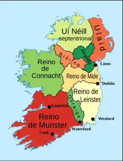 Muirchertach Ua Briain, roi de Munster, est proclamé Ard-rí en 1093 : il étend sa domination à une partie du Leinster et du Connacht. Il crée pour la première fois une structure étatique et transfère sa capitale à Limerick avec une ébauche de bureaucratie et des cadres issus des différents pays soumis. Il charge ses poètes de cour de créer une tradition qui établirait sa suprématie sur l'ensemble de l'Irlande. Il centralise le clergé autour de l'archevêché de Cashel dans l'actuel comté de Tipperary, avec des diocèses permanents qui ne dépendent plus du découpage des chefferies[19]. Il conclut une alliance avec Magnus III de Norvège qui s'est emparé du royaume de Dublin : un mariage est conclu entre Sigurd, fils de Magnus, et Biadmaine, une fille de Muirchertach. Mais Magnus meurt dans une expédition en Ulster en 1103 et Muirchertach, gravement malade, se retire dans un couvent en 1116[20].