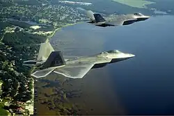 L'USAF apporta l'essentiel de la puissance aérienne alliée pendant la guerre du Golfe en 1991[48], opérant aux côtés de l'US Navy et de la Royal Air Force. Les capacités furtives du F-117 Nighthawk furent démontrées pendant la première nuit de la guerre aérienne, lorsqu'il fut capable de bombarder le centre de Bagdad en évitant l'impressionnante quantité de défenses antiaériennes irakiennes sophistiquées qui protégeaient la ville[49],[50],[51]. L'USAF, avec l'aide de l'US Navy et la RAF effectua ensuite de longues patrouilles sur le nord et le sud de l'Irak après la guerre pour s'assurer que les capacités de défense aérienne de l'Irak ne pourraient plus être reconstruites. L'opération Provide Comfort, de 1991 à 1996, et l'opération Northern Watch, de 1997 à 2003, établirent des zones d'exclusion aériennes au nord du 36e parallèle nord[52],[53], tandis que l'opération Southern Watch, de 1992 à 2003, établit une zone d'exclusion aérienne au sud du 32e parallèle nord[54],[55],[56].