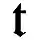 - t : toujours bas sous la hauteur d'x, avec la partie inférieure droite remontant fortement et brutalement comme un éperon ;