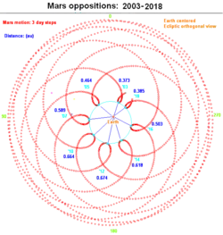 Modèle informatique moderne illustrant les oppositions de Mars, correspondant au modèle de Kepler. |
