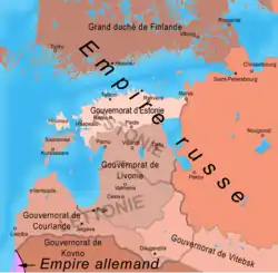 La Courlande (Kurzeme), annexée par la Russie à la suite du troisième partage de la Pologne (1795), est regroupée avec l'Estlande et la Livonie dans un ensemble baptisé du mot allemand de Baltikum qui est dirigé à compter de 1801 par un gouverneur russe unique installé à Tallinn[N 3]
