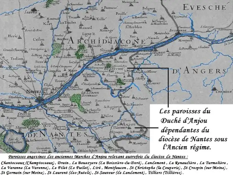 Le tout nouveau département de la Loire-Inférieure inclut, dans le Sud-Est de ses nouvelles limites, la paroisse de La Boissière-du-Doré, qui appartenait jusqu'au XVIIIe siècle au territoire des Mauges, partie intégrante de l'Anjou, ainsi que la paroisse poitevine de Remouillé, rattachée par erreur au département de la Loire-Inférieure.