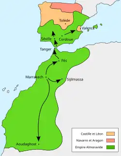 Un siècle plus tard, une confrérie Zénète prend le contrôle du Maghreb tout entier, mais se soucie peu du Sahara, qui passe sous l'influence plus proche de l'empire Soussou de Soumaoro Kanté, puis celui du Mali, de Sunjata Keita, les cités de Oualata, Awdaghost, Azougui, talonnées par les célèbres Chinguetti, Ouadane et Tichitt, ou encore Rashid et Qçar al-Barka se développent et prennent un rôle majeur dans le très intense commerce caravanier qui relie Djenné dans le delta intérieur du Niger, aux cités almohades puis Mérinides du "royaume de Marrakech".