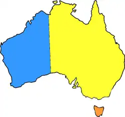Cette revendication n'eut pas de conséquence jusqu'en janvier 1788, lorsque Arthur Phillip arriva avec la First Fleet pour s'installer avec les premiers condamnés à l'emplacement de ce qui est maintenant Sydney. Phillip, comme gouverneur de la Nouvelle-Galles du Sud, exerçait son autorité sur l'ensemble de l'Australie située à l'est du 135e méridien entre les latitudes 10° 37' S et 43° 39' S, ce qui comprenait la plupart de la Nouvelle-Zélande (sauf la partie sud de Île du Sud[6]). Pendant 40 ans, l'histoire de la Nouvelle-Galles du Sud se confondit avec l'histoire de l'Australie et ce n'est qu'en 1803 que certains points de peuplement ont été installés à l'extérieur des limites de la Nouvelle-Galles du Sud mais ceux-ci, comme Hobart et Launceston en Tasmanie, ont été d'abord des dépendances de la Nouvelle-Galles du Sud. Ce n'est qu'en 1825 que la Tasmanie est devenue une colonie autonome. C'est aussi cette année-là, le 16 juillet, que la frontière de la Nouvelle-Galles du Sud a été déplacée plus à l'ouest, sur le 129e méridien pour englober le très court point de peuplement de l'île Melville. En 1829 cette frontière est devenue la frontière avec l'Australie-Occidentale, qui était aussi une colonie britannique.