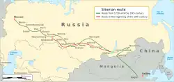 Le développement de la Sibérie est handicapé par l'absence de moyens de transport dans la région ainsi qu'entre la Sibérie et le reste du pays. Hormis la route de Sibérie, les routes de qualité utilisables par des véhicules à roues étaient peu nombreuses et le réseau peu dense. Pendant cinq mois de l'année environ, le transport passait pour l'essentiel par les voies fluviales et pendant les six mois les plus froids de l'année, marchandises et passagers voyageaient sur des traîneaux tirés par des chevaux sur les routes disponibles en hiver qui étaient souvent constituées par les fleuves gelés.
