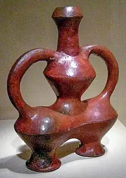 Au Pérou, son apparition semble surtout liée à un but utilitaire, notamment pour la cuisson des nouveaux produits agricoles. Cependant on connaît aussi quelques figurines féminines, comme la Vénus de Curayacu, du musée national du Pérou, datée du IIe millénaire avant notre ère[19]. Ce personnage féminin se présente dans une attitude frontale et hiératique, les bras plaqués sur le corps, le décor se résumant à des incisions.