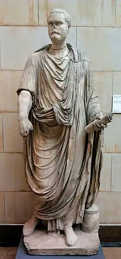 Bien que les femmes jouent un rôle religieux secondaire mais réel, pour exercer une fonction sacerdotale il faut être un homme. Posséder la citoyenneté est une autre condition nécessaire puisque les cultes publics se pratiquent au nom de la communauté. Par exemple, tous les magistrats doivent exécuter des tâches sacerdotales exigeantes en temps et en moyens[89] : assurer le déroulement de sacrifices ainsi que l’ordonnance du banquet sacrificiel, dédier des sanctuaires aux divinités publiques et interroger les dieux au moyen des auspices. D’autres, les prêtres, sont formés dans des collèges sacerdotaux et se distinguent des magistrats par le fait qu’ils sont les uniques dépositaires du droit sacré. De plus, les magistrats sont élus et soumis à des critères censitaires et d’âge, tandis que les prêtres en sont exempts, alors que les deux classes proviennent de l’élite sénatoriale. Les prêtres sont nommés à vie et, même s’ils ne détiennent pas l’imperium et les autres charges de magistrature, ils peuvent, si des augures négatifs se présentent, ajourner une assemblée, et le consul ne peut s'y opposer, de sorte qu'ils exercent une influence considérable sur la vie publique[90]. Ce n’est qu’à partir du milieu du IIIe siècle av. J.-C. que le Pontifex maximus, autorité suprême du pouvoir religieux, est élu par les tribus – mais cette élection se fait entre trois candidats proposés par le collège pontifical. Ce processus s’appliquera à l’ensemble des prêtres un siècle et demi plus tard[91]. Ces structures vont changer sous l’Empire, le prince étant le grand pontife et s’arrogeant une part écrasante du pouvoir décisionnel.