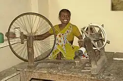 Le boycott des produits manufacturés anglais et un appel en faveur du tissage local font partie du « programme de non-coopération » que lance Gandhi en 1920, et qui est formulé à la session spéciale du Congrès de septembre 1920. Dans le cadre de sa politique de boycott des marchandises étrangères, spécialement anglaises, il demande que le khadi (vêtement fait maison) soit porté par tous les Indiens au lieu des textiles britanniques. Riches ou pauvres, hommes ou femmes, doivent filer chaque jour afin d'aider le mouvement d'indépendance[19].
