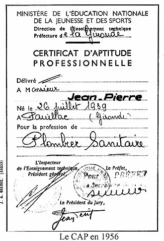 - ↑ Claude-Paul Padroni, Thèse pour le doctorat de l'Université de Rennes I, « De L'Enseignement Technique à L'Enseignement Professionnel ».