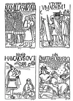 Au sud du Pérou, à Cuzco, à l'arrivée des Espagnols qui ravagèrent la ville en 1534, la plantation des papas faisait l'objet d'une cérémonie rituelle. Les grands prêtres du temple du Soleil en ordonnaient la plantation, au commencement de la saison des pluies, lorsque les premières pousses de maïs, semés en septembre, atteignaient un centimètre. Les hommes creusaient le sol avec la chaquitaclla, outil agricole encore en usage aujourd'hui dans les Andes[12], et les femmes plantaient les semences. Au cours d'une cérémonie publique qui rassemblait toute la population : des lamas étaient sacrifiés pour s'attirer la bienveillance de Axomama, la déesse mère des pommes de terre très vénérée dans le panthéon des dieux incas[13]. On y dansait et on y buvait de la chicha pour fêter l'arrivée de la pluie. Les papas étaient récoltées en juin[14].