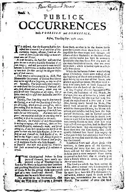 Même si la censure pré-publication persiste dans les colonies, l'explosion de la presse outre-atlantique s'accompagne d'une expansion prudente de la presse coloniale au début du XVIIIe siècle. Ainsi, en 1704, John Campbell crée The Boston News-Letter, un hebdomadaire publié avec l'accord officiel du gouverneur de la Baie du Massachusetts, Joseph Dudley. Dans son journal, Campbell adopte une attitude éditoriale très effacée, tirant la majorité de son information du London Flying Post et de la London Gazette, organe officiel du gouvernement anglais puis britannique. Dès 1719, Campbell a de la compétition avec la fondation de la Boston Gazette. Au fil des décennies, des journaux voient également le jour à Philadelphie (The American Weekly Mercury, 1719; The Pennsylvania Gazette, 1728), à New York (The New-York Gazette, 1725) et en Virginie (The Virginia Gazette, 1736)[8]. Si la majorité de ces journaux ne survivent que brièvement, on trouve 16 journaux dans les 13 colonies vers 1740 et 24 au milieu des années 1760[9].