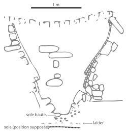 Photo et schéma des vestiges du haut fourneau de Lapphyttan, opérationnel entre 1150 et 1350. | ||