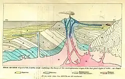 Au XVIIIe siècle, deux écoles s'affrontent : les neptunistes pensent que le contact de l'eau sur la pyrite enflamme des couches de charbon qui font fondre les roches environnantes alors que les plutonistes affirment qu'il existe une masse de roche en fusion dans les profondeurs de la Terre et qui ressort à certains endroits.
