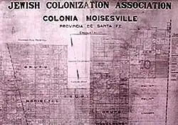 Après Moisés Ville, fut fondée la colonie Mauricio, dans la province de Buenos Aires, près de Carlos Casares, et ensuite les colonies Clara et San Antonio, en Entre Ríos. Entre la création de la JCA en 1891 et la mort du baron Hirsch en 1896, la JCA géra l’immigration d’une dizaine de milliers de juifs en Argentine, originaires principalement d’Europe orientale. Par la pratique de la vente à tempérament, la JCA sut faciliter l’accession à la propriété de la terre. Ainsi, vers 1940, 80 % des colons juifs avaient terminé de rembourser leurs dettes et étaient donc devenus propriétaires[24]. Il existait par ailleurs des colonies juives créées sans le secours de la JCA, soit par des colons en désaccord avec celle-ci, soit par des immigrants résolus de s’organiser eux-mêmes. De telles colonies existaient dans les provinces de Buenos Aires, de Río Negro, du Chaco et de La Pampa[23]. Aussi, si certes beaucoup de ces immigrants juifs choisissaient de s’installer dans les principales villes d’Argentine, nombre d’autres acquirent des terres par le biais de la JCA et établirent de petites colonies agricoles (comunas) dans l’intérieur du pays, plus particulièrement dans les provinces de Santa Fe et d’Entre Ríos[25].