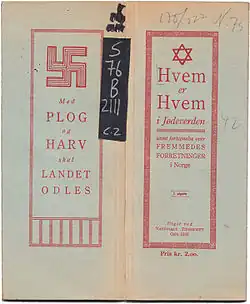 Entre 1916 et 1945, l'écrivain Mikal Sylten publie un périodique antisémite intitulé Nationalt Tidsskrift qui relaie des théories du complot antisémites[9]. Un document intitulé « Qui est qui dans le monde juif » est publié en quatre éditions à partir de 1925. Elle contient une liste de Juifs et de Juifs présumés de Norvège, classés par profession[10]. Sylten est par la suite jugé pour sa collaboration avec les nazis pendant l'occupation allemande.