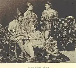 Les Juifs s'insèrent économiquement, culturellement et linguistiquement dans la société, tout en conservant leurs particularités culturelles et religieuses[63]. Si elle est lente, l'arabisation est plus rapide en milieu urbain, à la suite de l'arrivée de Juifs d'Orient dans le sillage des Arabes[62], et dans les classes aisées[66]. On les appelle « peuple de Dieu » pour les uns ou « fils de la mort » (oulad el mout) pour les autres[67].