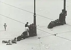 Le , les Allemands lancent un ultimatum exigeant la reddition du port de Rotterdam faute de quoi la ville serait bombardée. Peu de temps après la fin de l'ultimatum, la reddition est annoncée, mais la première partie des bombardiers déjà envoyés en mission ne peut pas être rappelée, et la ville subit un bombardement sauvage qui fait 800 morts et 78 000 sans-abri. Cette bavure est imputée à un problème de communication[2]. C'est après le bombardement de Rotterdam que l'armée néerlandaise se rend, mais quelques combats se poursuivent en Zélande au côté de la 7e armée française, jusqu'au bombardement de Middelbourg ().