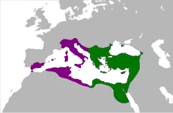 L'Empire romain est connu pour avoir été la plus large et la plus puissante civilisation d'Europe relativement à son époque. Après les guerres puniques, il était déjà le plus grand empire de la planète mais continua son expansion avec l'annexion de la Grèce et de l'Asie mineure. En Rome contrôlait la moitié de l'Europe ainsi que l'Afrique du Nord et une large partie du Moyen-Orient. Seule la Chine des Han pouvait prétendre rivaliser de puissance avec elle. Rome avait également un développement culturel poussé, notamment en matière d'architecture, inspiré de la civilisation grecque.