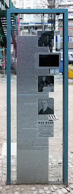 Sur la façade du bâtiment, une plaque commémorative déclare « De ce bâtiment 146 enfants juifs sourds furent arrêtés par des bandits fascistes en 1946 et assassinés. En souvenir des morts et comme exhortation aux vivants »[35]. L'institution est alors un succès, au point qu'elle inspire la création de la première école secondaire pour sourds dans l'état de Prusse, et accueille des élèves sourds de l'étranger[34].