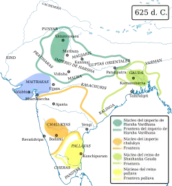 - Empire de Harsha (606-647) ou royaume de Kannauj (en) ou Pushyabhuti