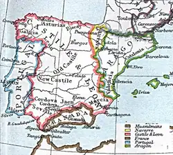 En 1469, Valence est derrière Grenade la ville la plus peuplée de la péninsule, avec une population estimée de 40 000 à 70 000 habitants, le royaume dans sa totalité en comptant alors environ 250 000 (environ 30 000 à Barcelone à la même époque)[21]. De son côté la Catalogne se trouve prise dans une guerre civile entre 1462 et 1472, et le royaume de Valence domine la couronne d'Aragon[22],[8].