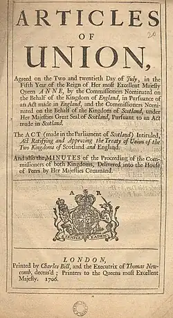 Une intégration politique plus profonde est le projet de la reine Anne de Grande-Bretagne (1702–1714) qui succède au trône en 1702 comme dernière monarque Stuart de Grande-Bretagne et d'Irlande. Un Bill d'Union est établi sous l'égide de la reine et de ses conseillers, les négociations commencent pour de bon en 1706. Les circonstances de l'acceptation de l'Écosse sont discutées. Les partisans écossais croient que l'échec de l'accession au Bill provoquera l'imposition de l'union dans des conditions beaucoup moins favorables ; ils craignent de longs conflits des deux côtés qui conduiront à un désordre civil, surtout à Édimbourg, dont la population est coutumière (Edinburgh Mob). Le projet d'une union des deux royaumes est très impopulaire parmi la population écossaise[réf. nécessaire] cependant, après le désastre du projet Darién, le parlement d'Écosse pratiquement en faillite, accepte les propositions à contre-cœur (les petites incitations financières pour les parlementaires écossais ainsi que les manœuvres de l'armée anglaise[réf. nécessaire] dans le nord de l'Angleterre jouent également un rôle dans la prise de décision).