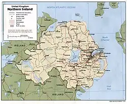 Le traité anglo-irlandais de 1921 négocié entre les représentants britanniques et irlandais et ratifié par quatre parlements[notes 3] établit l'État libre d'Irlande (Irish Free State) d'abord considéré comme un dominion de l'Empire britannique, comme le Canada ou l'Afrique du Sud, mais qui quitte le Commonwealth britannique et devient une république après la Seconde Guerre mondiale sans aucun lien constitutionnel avec le Royaume-Uni. Six comtés du nord, majoritairement protestants, restent attachés au Royaume-Uni (Irlande du Nord).