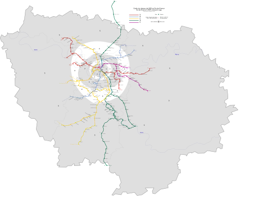 Au milieu du XIXe siècle, Paris possède neuf gares terminales qui ne sont pas reliées entre elles. Afin de permettre le transit entre les différents réseaux, la Petite Ceinture[3] est construite entre 1852 et 1869. Il s'agissait d'une ligne circulaire située à l'intérieur de l'enceinte de Thiers et traversant ce qui était alors la petite couronne de Paris. D'abord réservée aux marchandises, elle est ouverte aux voyageurs dès 1854 pour la ligne d'Auteuil puis à partir de 1862 sur le reste de la Ceinture. À son apogée, elle dessert vingt-et-une gares et atteint les trente-huit millions de voyageurs transportés lors de l'exposition universelle de 1900. Le succès de ce qui devient une véritable desserte ferroviaire urbaine est très vite au rendez-vous, si bien que des extensions vers Boulogne sont même évoquées, sans suite[3]. En revanche, dans Paris, de nombreux raccordements permettent des services entre la Ceinture et les gares terminales. La Petite Ceinture a prouvé qu'un réseau ferroviaire métropolitain était nécessaire, mais n'est pas, du fait de son rôle de rocade, suffisante pour désencombrer durablement les axes de transport de surface dans le centre de la capitale.