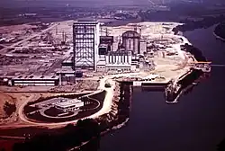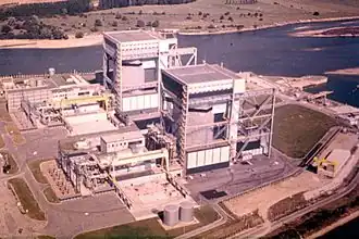 Le contrat-programme 1, engagé en 1974[124], comprend 16 tranches de 900 MWe : Blayais (1, 2, 3, et 4), Dampierre (1, 2, 3 et 4), Gravelines (B1, B2, B3 et B4) et Tricastin (1, 2, 3 et 4). En 1979, deux tranches supplémentaires (C5 et C6) sont ajoutées à Gravelines, portant à 18 le total du palier CP1. Sous la présidence de Valéry Giscard d'Estaing, bien que la consommation électrique nationale commence à stagner, le plan Pompidou-Messmer n'est pas ralenti car la volonté de diminuer la dépendance au pétrole importé prime. Volonté qui est renforcée par le deuxième choc pétrolier. Le contrat-programme 2, lancé en 1976, comprend dix tranches : Chinon (B1, B2, B3, B4) ; Cruas (1, 2, 3, et 4) et Saint-Laurent-des-Eaux (B1 et B2)[125]. La différence majeure du palier CP2 avec le palier précédent est la disposition radiale de la salle des machines par rapport à l’îlot nucléaire, qui permet d'éviter que des projectiles résultant d'une rupture de la turbine n'endommagent l'enceinte de confinement du réacteur[126],[127].