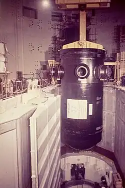 - ainsi, dans le cadre d'Euratom, électriciens français et belges s'associent pour construire en 1966 un réacteur à eau pressurisée (REP) américain à proximité de la frontière entre la Belgique et la France: le prototype de la centrale des Ardennes (rebaptisée ensuite Chooz A)[93]. La Belgique n'est pas à son premier essai en la matière puisqu'elle a déjà accueilli en 1962, à Mol, le premier REP américain en Europe (BR-3)[94] ;