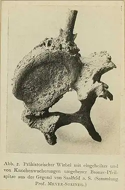 - ↑ Rosendahl, G., Beinhauer, K.-W., Löscher, M., Kreipl, K., Walter, R. et Rosendahl, W. (2006) - « Le plus vieil arc du monde ? Une pièce intéressante en provenance de Mannheim, Allemagne », L'Anthropologie, 110, no 3, p. 371-382.