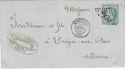 - ↑ Jean et Vincent Pothion Catalogue des marques postales linéaires France 1792-1832 - La poste aux lettres - Paris 1987
