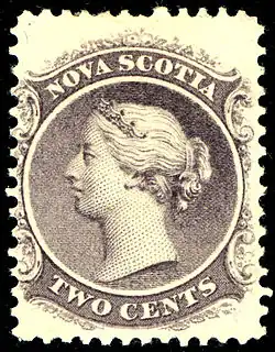 En 1863, la Nouvelle-Écosse émet 6 timbres à la suite de la nouvelle monnaie décimale (en cents/dollars) à l'effigie de la reine Victoria. Ils sont imprimés sur papier blanc ou jaunâtre avec une dentelure 12. Les 3 premiers sont illustrés d'après une monnaie de Leonard Wyon. Ils sont respectivement noir de 1 ¢, (gris)lilas de 2 ¢ et bleu de 5 ¢. Les 3 derniers sont illustrés d'après une peinture du portraitiste Franz Xaver Winterhalter pour un timbre vert de 8½¢, un vermillon de 10 ¢ et un noir de 12½¢.