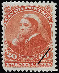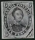 Le , le timbre de 12d imprimé en noir est émis à l'effigie de la reine Victoria. Il fut gravé par Alfred Jones qui reproduisit le fameux portrait réalisé par le peintre Alfred Edward Chalon. Bien que 50 000 copies furent commandées, seulement 1 450 furent émises. Il est donc difficile d'obtenir aujourd'hui la moindre copie même oblitérée à moins de 30 000 dollars canadiens[8].