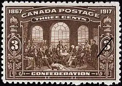 La « Loi sur la réglementation du service postal » (SC 31 Vic. 1867, chap. 10) qui entre en vigueur le prévoit un système postal uniforme pour l’ensemble du nouveau Dominion. Les timbres émis à partir de cette date remplacent tous ceux émis par les provinces constituantes. C'est désormais la British American Bank Note Company fondée à Montréal, en 1866[10] qui imprime les timbres du Canada.