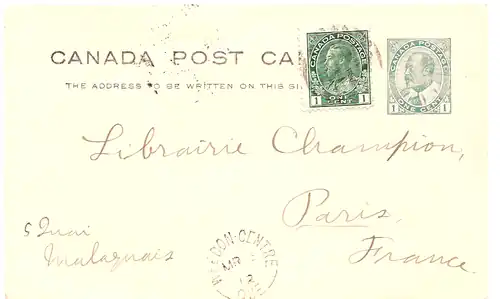 Le roi Édouard VII succède à la reine Victoria en 1901. Les premières rencontres menant à la création de l’Association canadienne des maîtres de poste débutent en 1902. C'est en 1903 que le ministère des Postes autorise l’envoi de cartes postales illustrées au Canada.