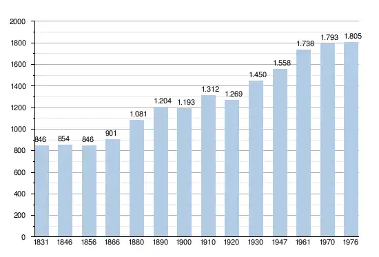 - Sources : INS, Rem. : 1831 jusqu'en 1970 = recensements, 1976 = nombre d'habitants au 31 décembre[4].