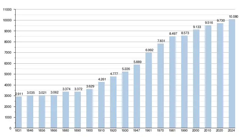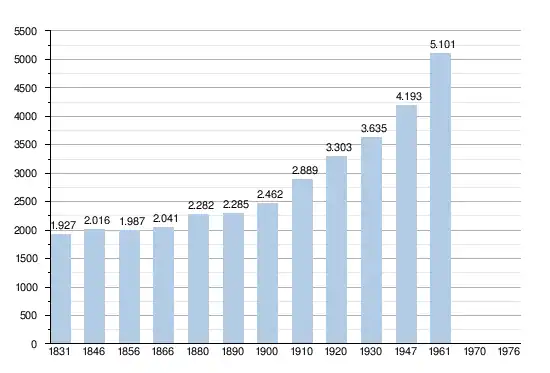 - Source : DGS - Remarque: 1831 jusqu'à 1981=recensement; depuis 1990=nombre d'habitants chaque 1er janvier[5]