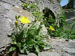 D'innombrables espèces opportunistes prospèrent au milieu des ruines laissées à l'abandon, parfois davantage qu'au milieu des éboulis naturels : ainsi les épervières, l’alysson des montagnes, l’orpin tuberculeux, la laitue vivace, le saxifrage paniculée et la valériane triséquée.