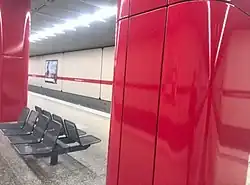 Vue partielle du quai central de la station en 2006, les colonnes ont le revêtement vert d'origine. | ||||||||