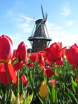 De Zwaan (le cygne), moulin à vent hollandais à Holland, Michigan au moment des tulipes.Répartition des Hollando-Américains, Census Bureau 2000.