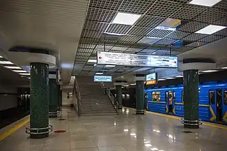 Mise en service en 2010, elle est desservie par les rames de la ligne M2. Le service est arrêté ou perturbé depuis l'invasion de l'Ukraine par la Russie en 2022.