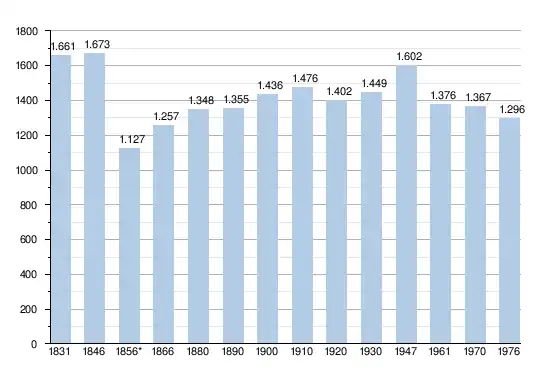 - Sources : INS, Rem. : 1831 jusqu'en 1970 = recensements, 1976 = nombre d'habitants au 31 décembre.