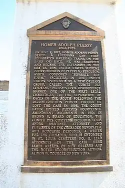 - ↑ (en-US) Ted Jackson / The Times-Picayune, « Plessy and Ferguson unveil plaque today marking their ancestors' actions », NOLA.com (consulté le )