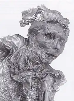 La peau du cadavre était noire et durcie. Il y avait encore des pores et environ 6 mm de poils de barbe rougeâtres sur la lèvre supérieure, la joue et le menton. Le visage était globalement bien conservé, en particulier le nez et l'œil gauche, initialement fermé. Au contact de l'air, cependant, il s'ouvrit un peu et rendit visible le globe oculaire et l'iris noir. La main gauche mieux conservée était bien soignée et ne montrait aucun signe de travail physique intense. Les pieds étaient bien soignés, les ongles soigneusement coupés.
