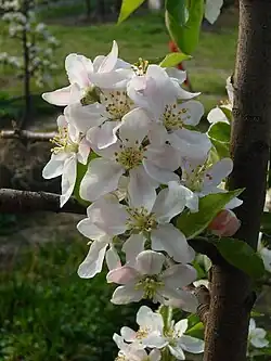 La floraison précède légèrement celle de la variété de référence 'Gala'.
